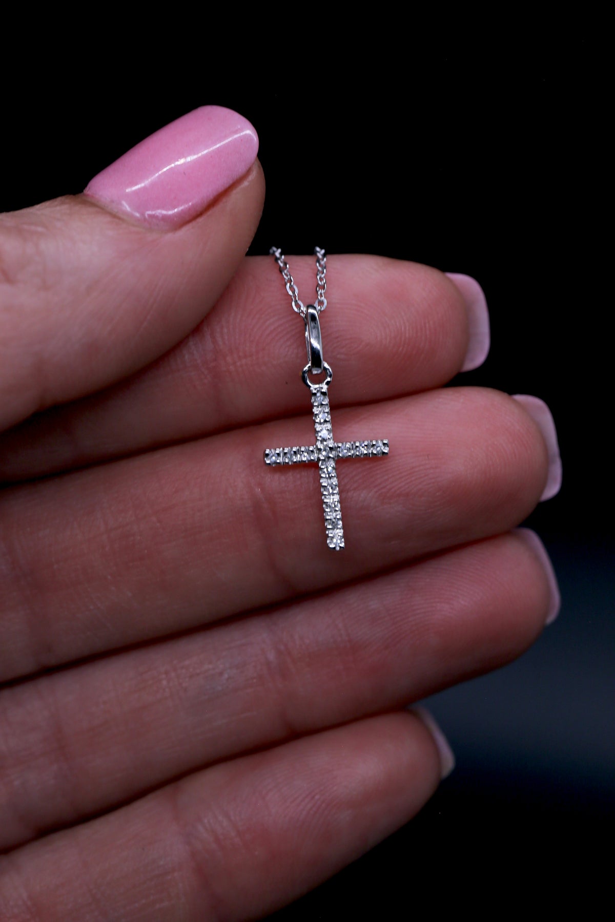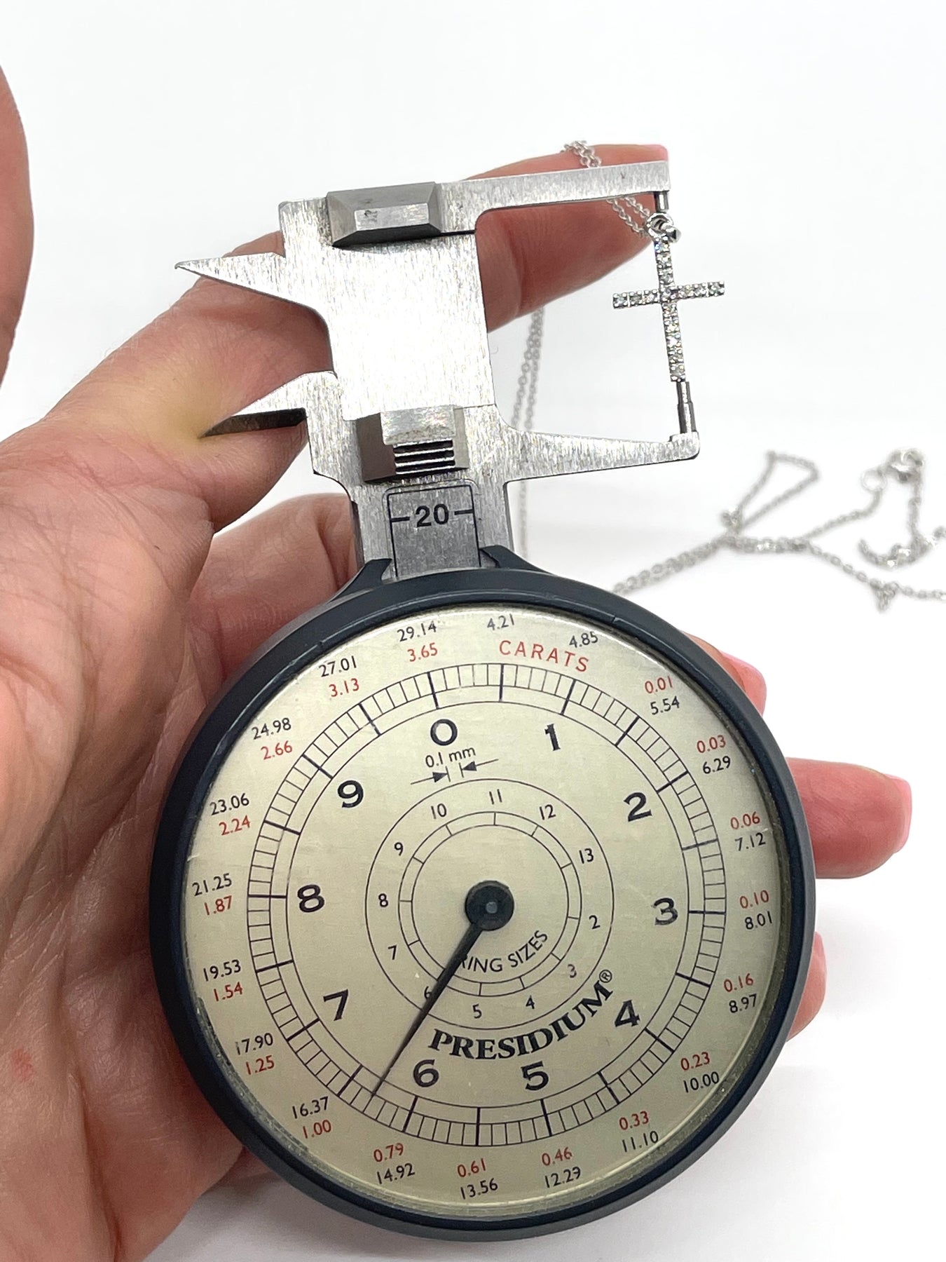 Cross size is 16.3mm by 11.2mm by 1.6mm 14k white gold