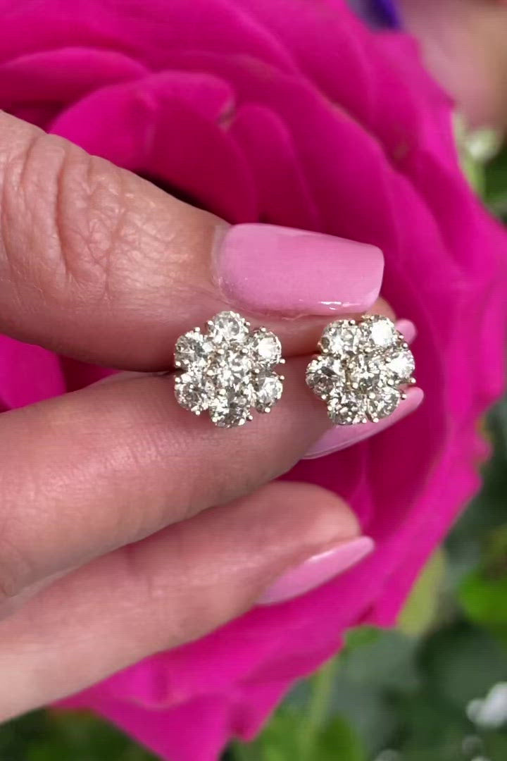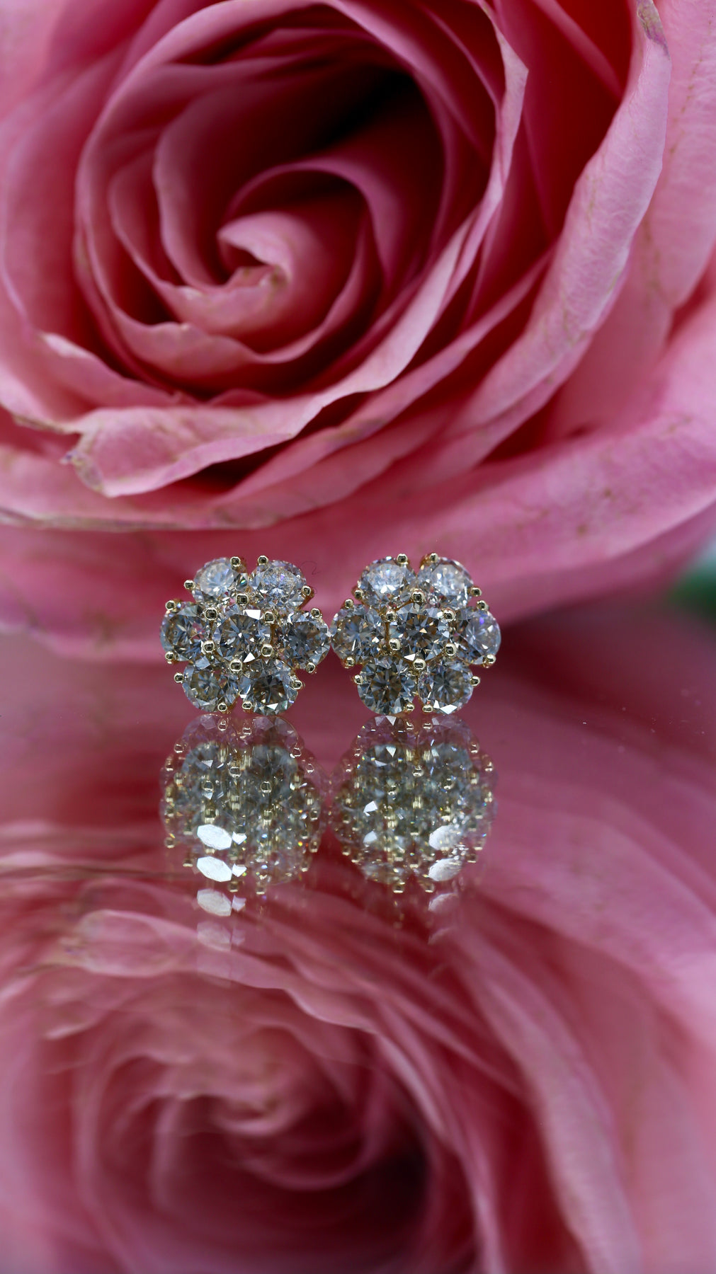 Each Clover has earring has 7 diamonds F color VS2 clarity and each earring is 1.29 carat diamonds.