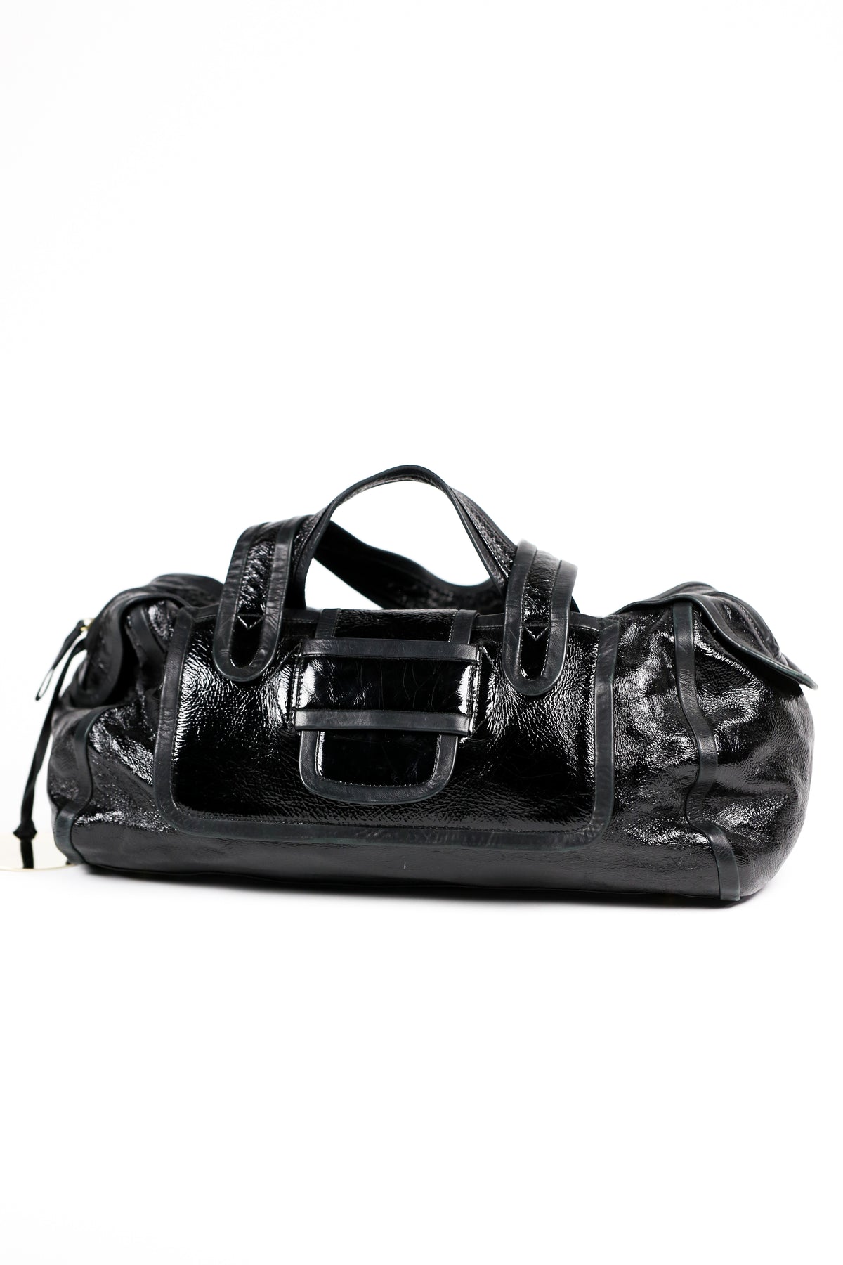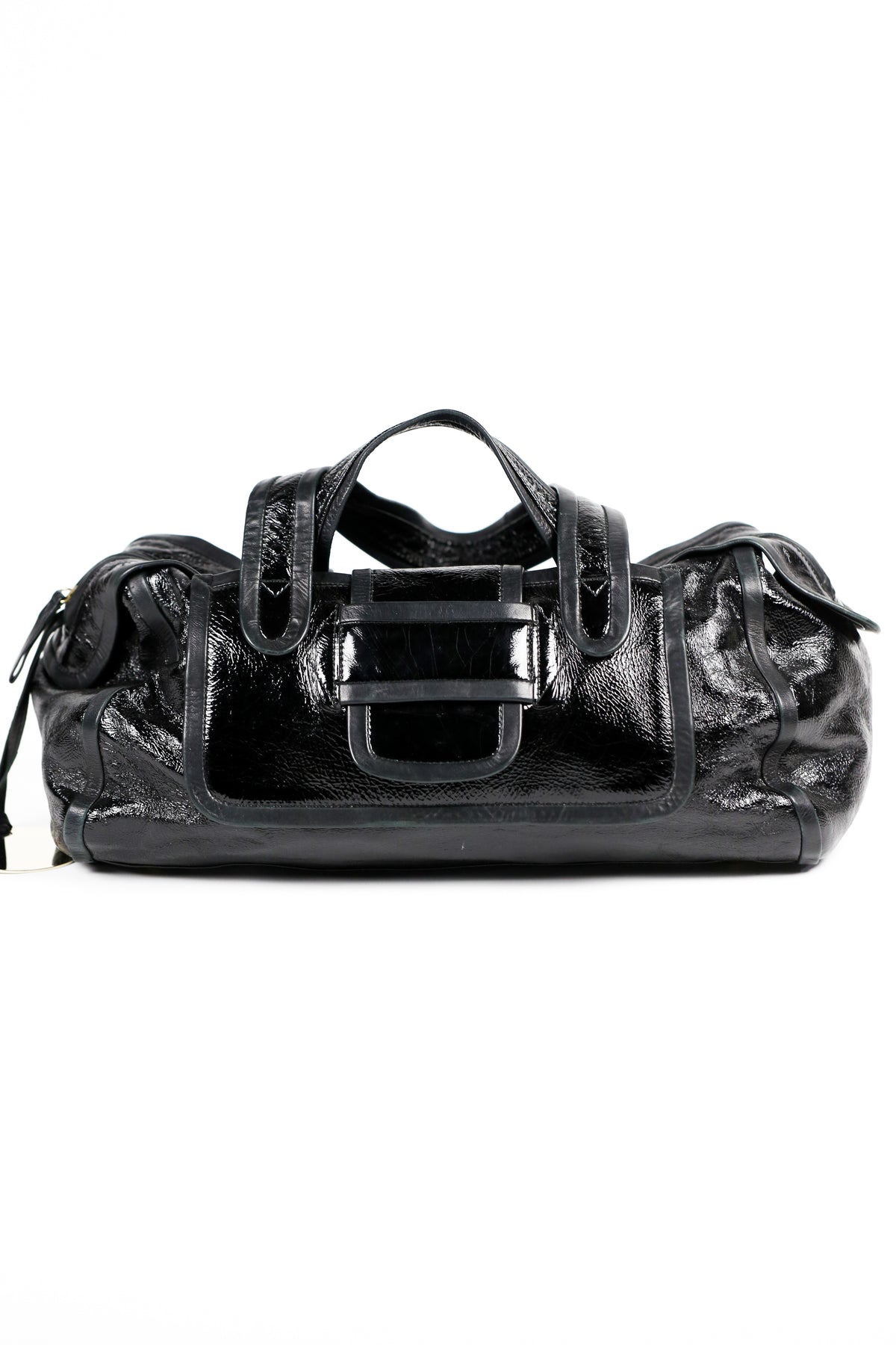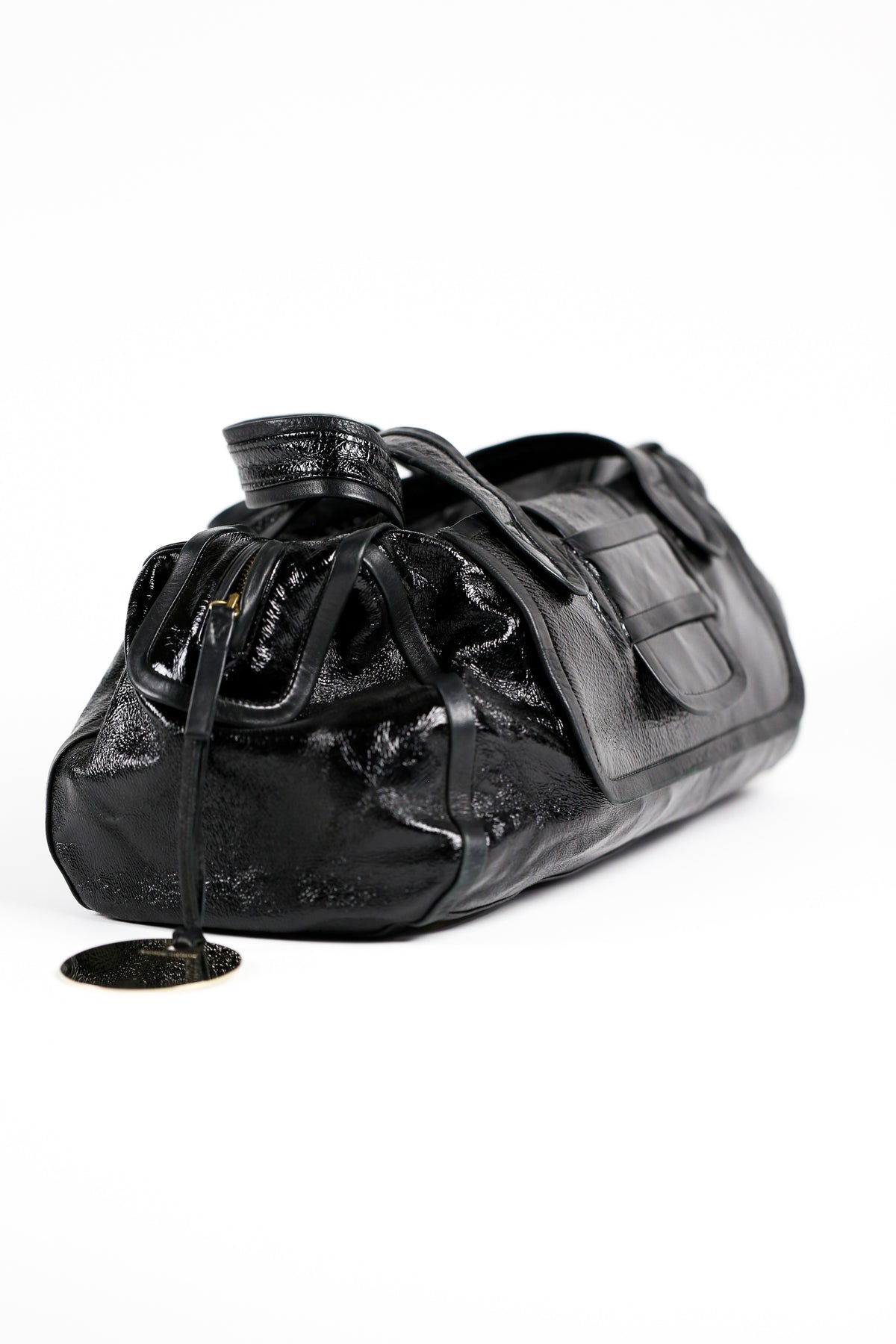 Large patent leather shoulder bag by Pierre Hardy.