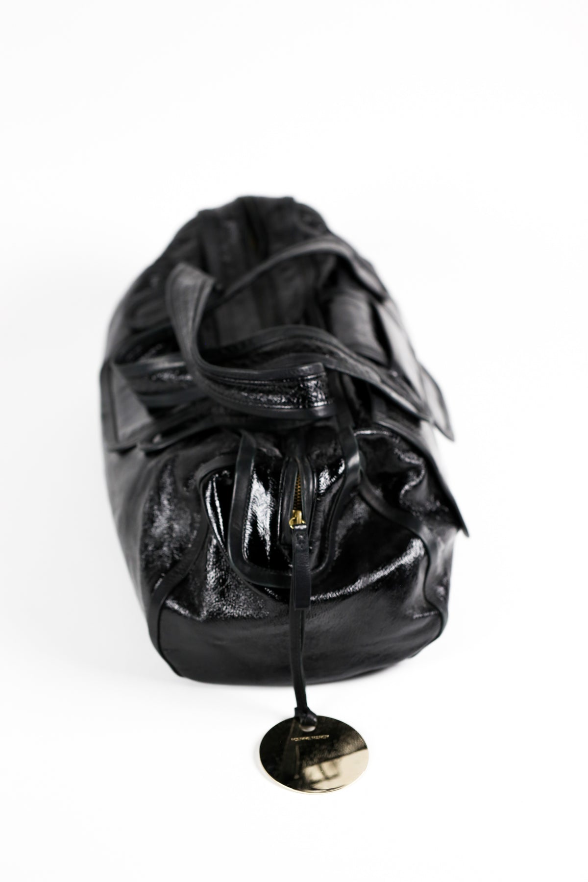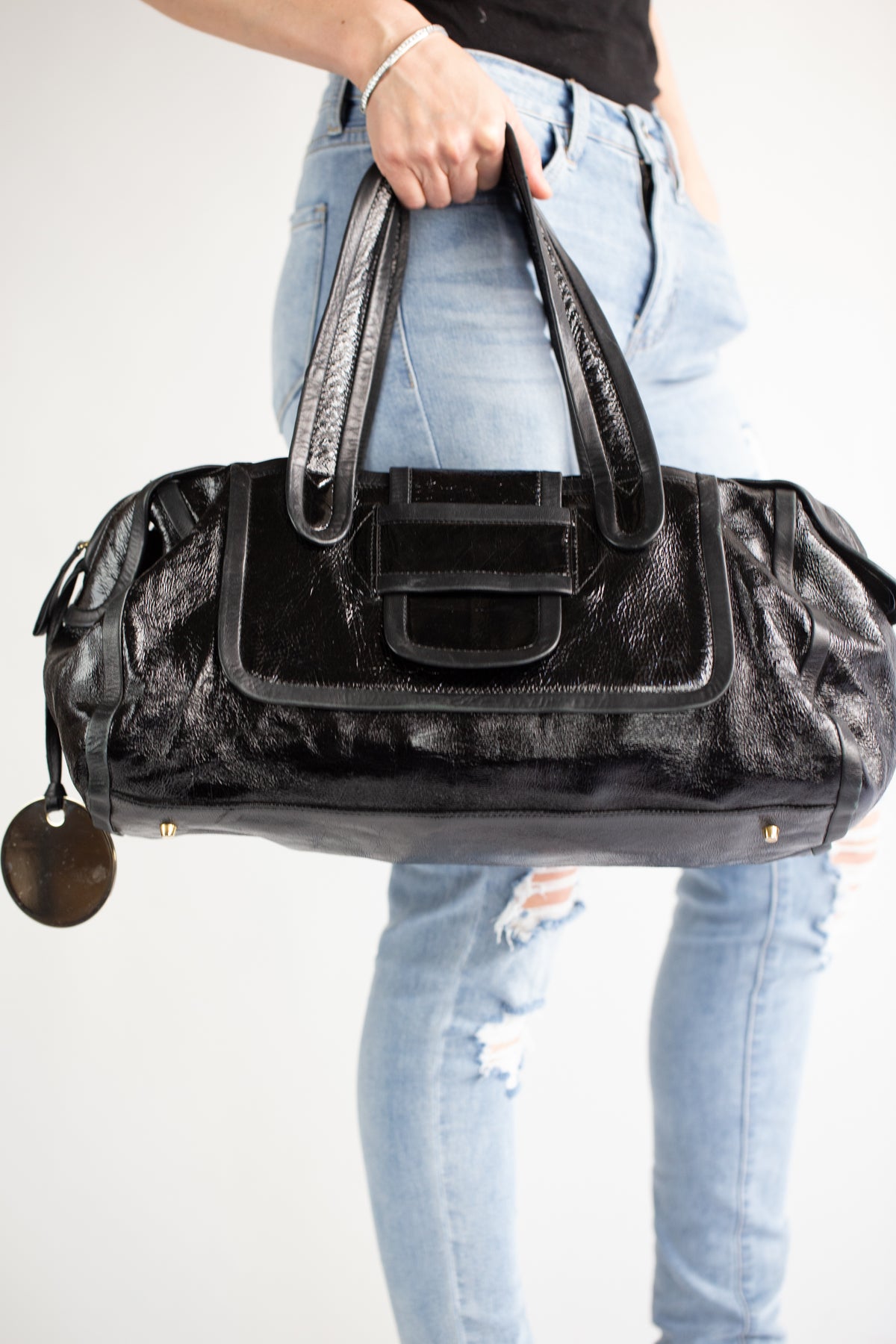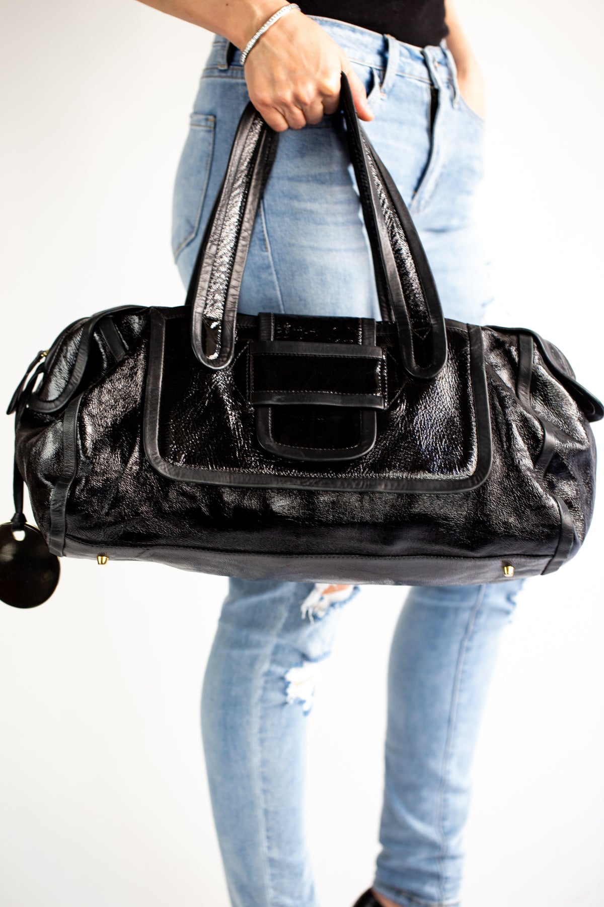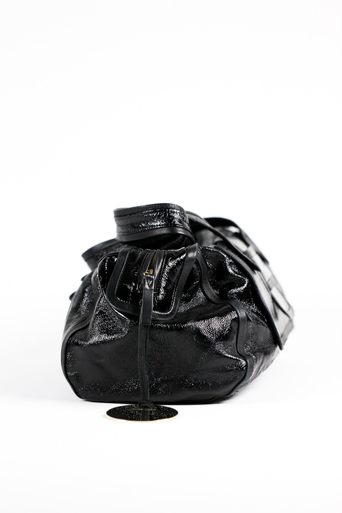 Large patent leather shoulder bag by Pierre Hardy.
