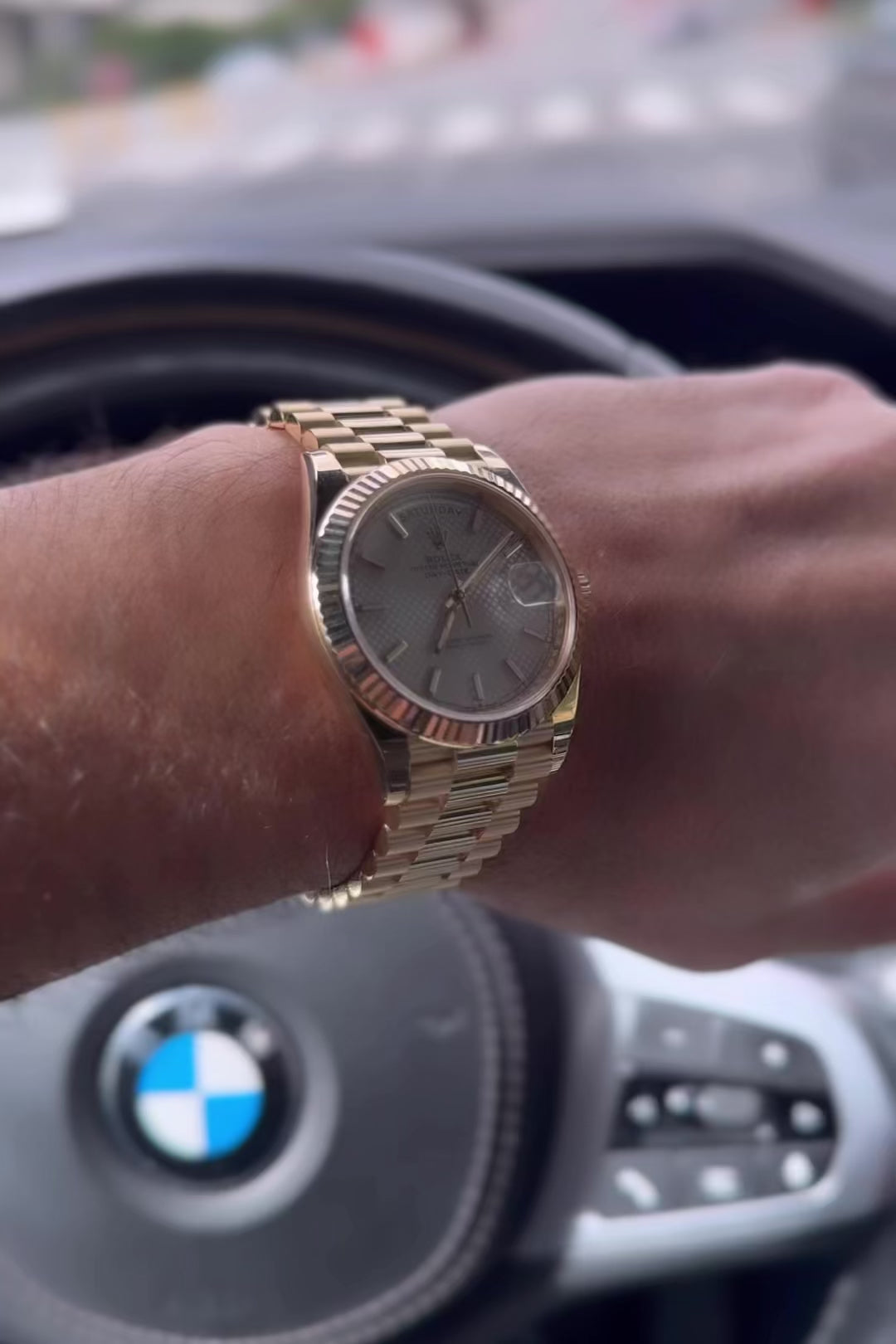 It was therefore identical to the fluting on the case back, which was also screwed onto the case for waterproofness, using specific Rolex tools. Over time, the fluting became an aesthetic element, a genuine Rolex signature feature. Today the fluted bezel is a mark of distinction, in gold on this Day-Date 40.