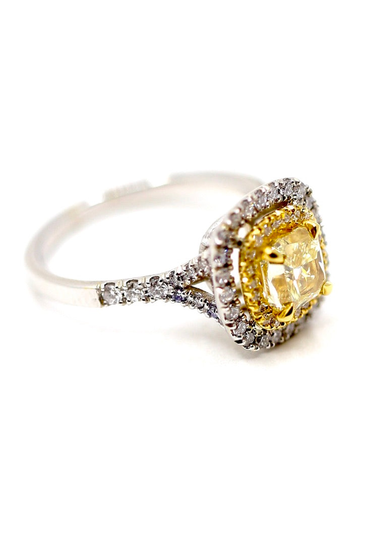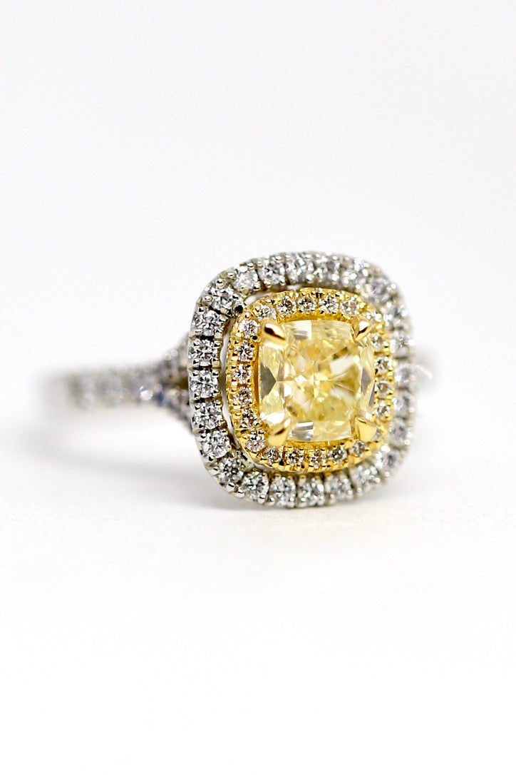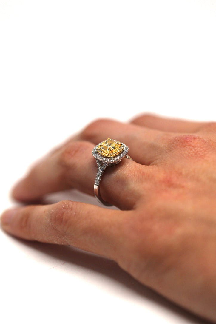 Center diamond is 1.36 carat GIA YZ Yelow Diamond VS2 Clarity