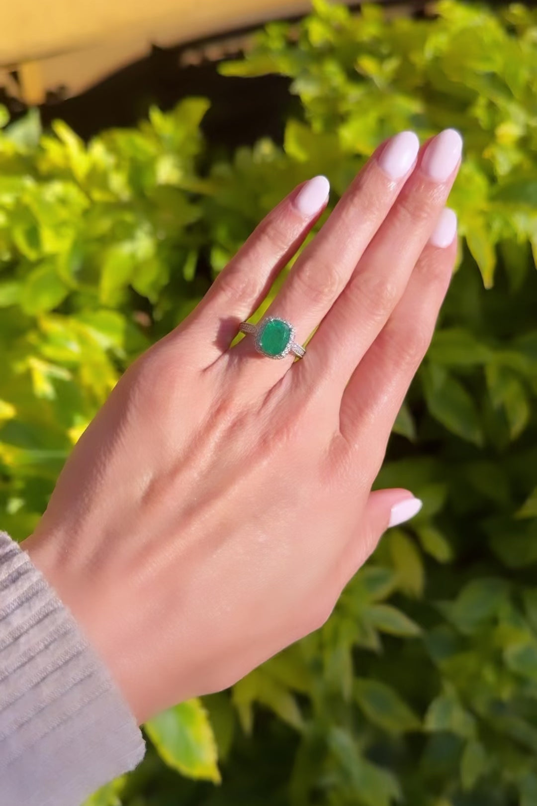 Center green emerald is 2.31 carat cushion cut